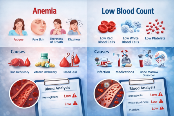 A lot of people use the terms anemia and low blood count in the same way. While they’re closely linked but they aren’t always identical. Understanding the distinction is essential as the proper diagnosis and treatment rely on the underlying issue.